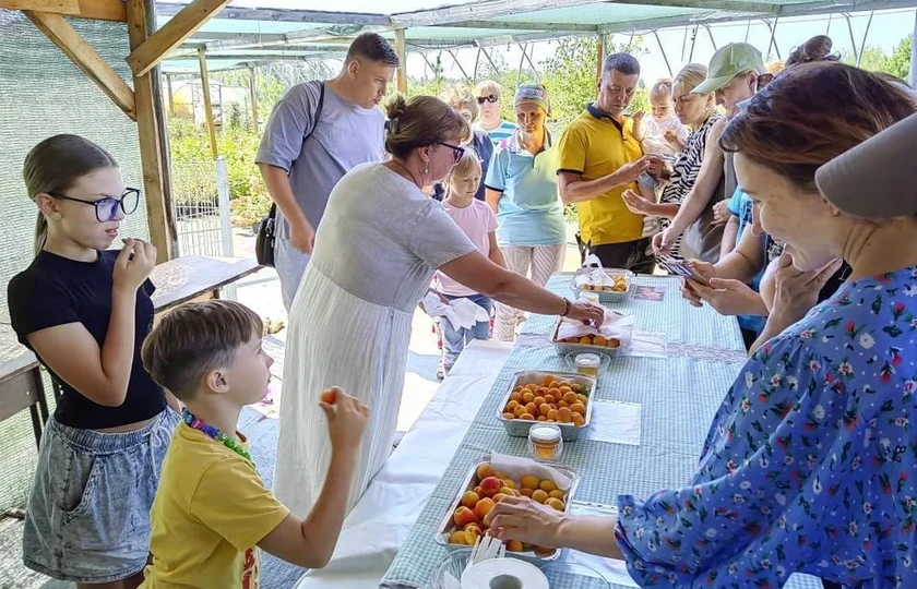 Естественно, шёл обстоятельный разговор об абрикосе: какой сорт выбрать, исходя из своей природно-климатической зоны, как грамотно ухаживать за деревом, чтобы оно затем тебя отблагодарило? Эти вопросы и профессиональные ответы на них были прелюдией к коронному номеру Дня открытых дверей – дегустации тех сортов абрикос, саженцы которых есть в этом питомнике. «Стожары» и минусинские питомниководы Пискуновы – давние партнёры.