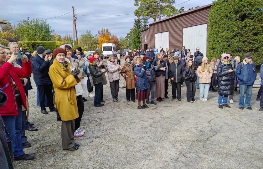 П.И. Суворов, члены совета старейшин, Е.А. Савинич у дома Крутовского